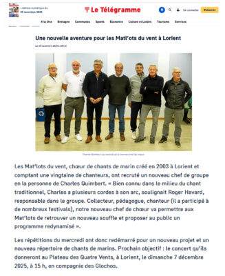 et Guidel, (voir l’onglet Prochaines Escales) ainsi que l’apprentissage de nouveaux chants