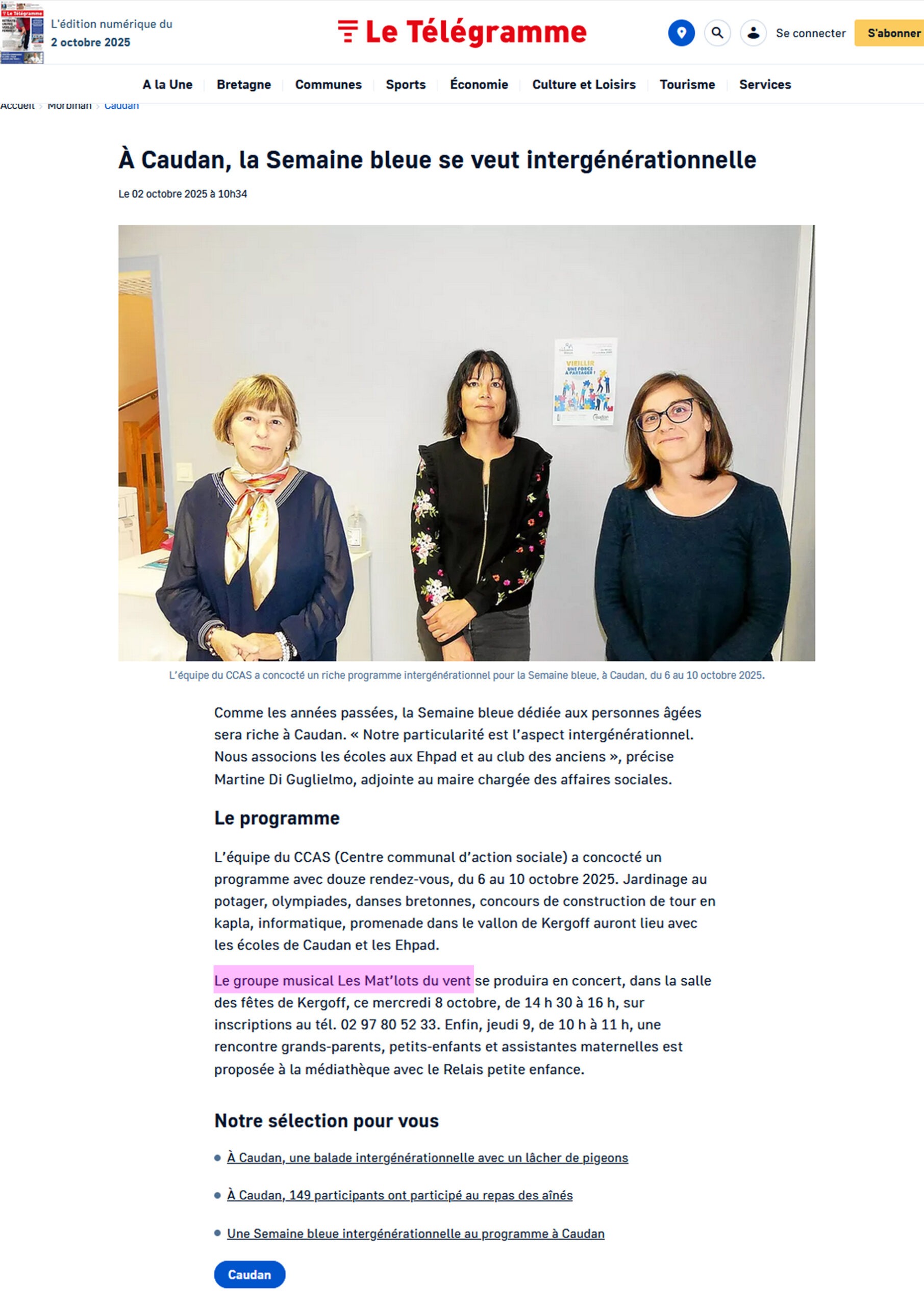 Dans le cadre de la semaine bleue le CCAS de Caudan organise